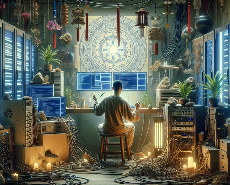 This exploration delves into the intersection of Eastern philosophy and Western technology, examining how concepts such as the Five Elements and Chi can be applied to system components and debug flow. Debugging is enjoyable for us select few and is stressful. Working with Feng Shui debug concepts helps lighten the activity. We'll investigate how traditional debugging approaches like divide and conquer, analyzing race conditions, and reviewing stack traces can be enhanced through a Feng Shui lens. Additionally, we'll discuss the potential benefits of this unique viewpoint in addressing common issues such as memory leaks and the value of techniques like rubber duck debugging and comprehensive logging with explicit data gathering in maintaining system harmony.